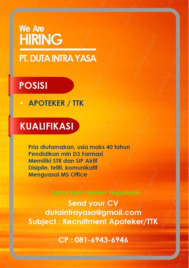 Lowongan Pekerjaan Apoteker dan TTK PT Duta Intra Yasa