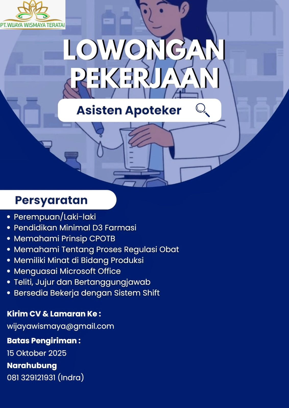 Lowongan Pekerjaan Asisten Apoteker PT Wijaya Wismaya Teratai