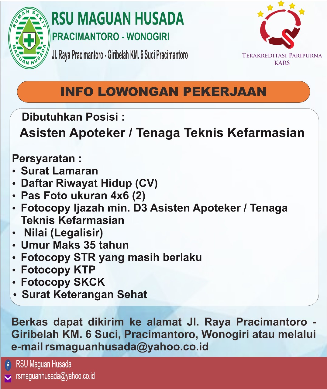 Lowongan Pekerjaan Asisten Apoteker RSU Maguan Husada