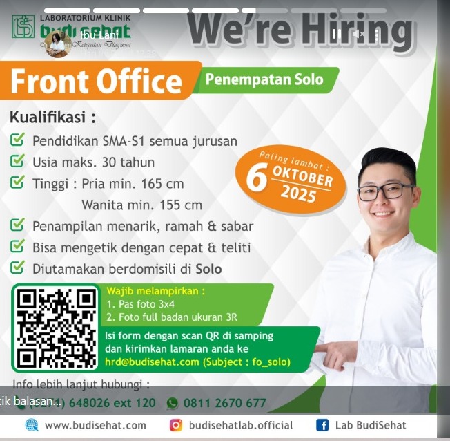 Lowongan Pekerjaan Front Office Laboratorium Klinik Budi Sehat