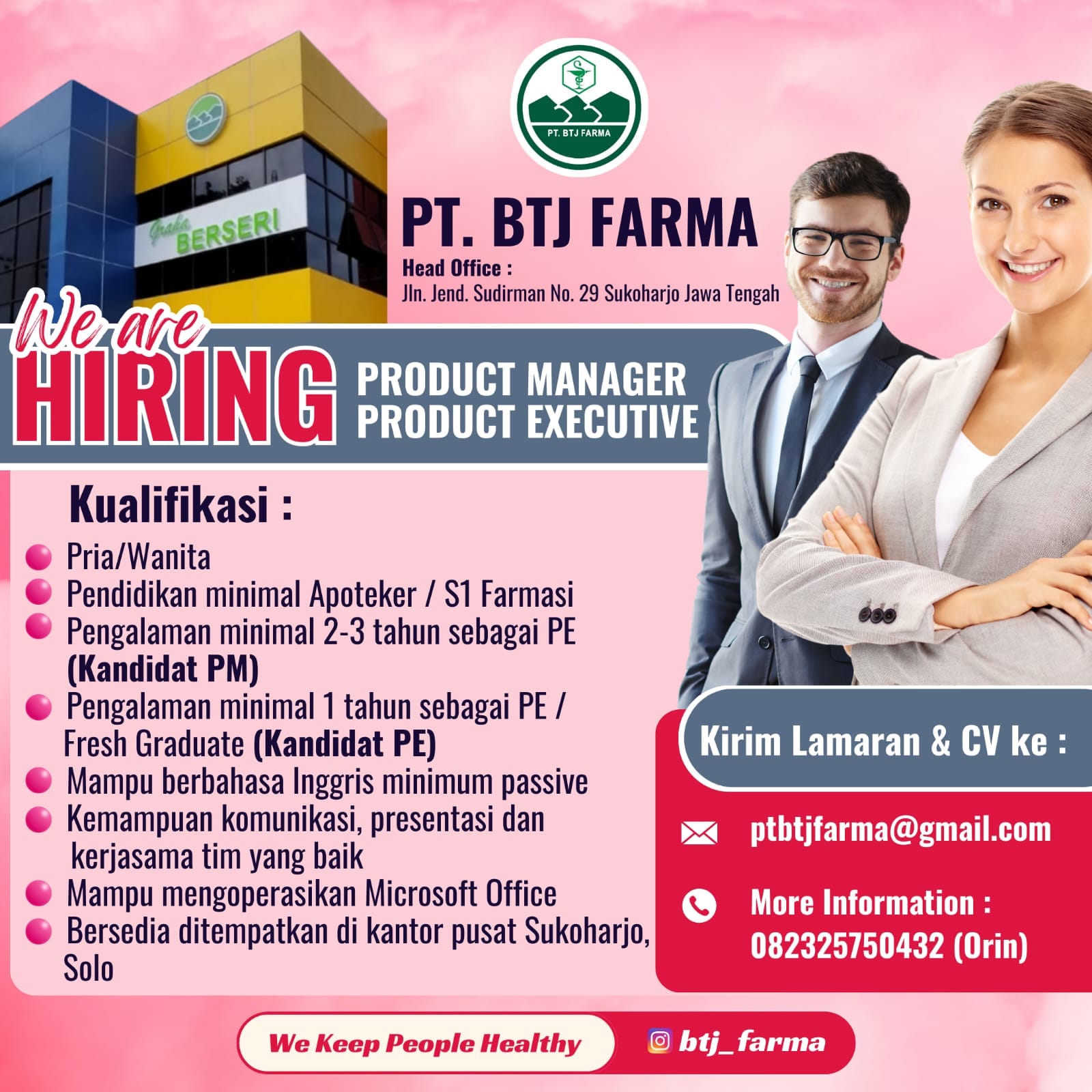 Lowongan Pekerjaan Product Manager dan Product Executive PT BTJ Farma