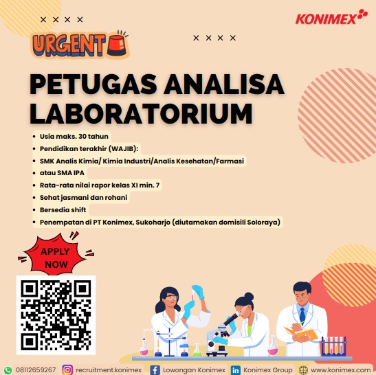 3. Lowongan Pekerjaan Analis Laboratorium PT Konimex