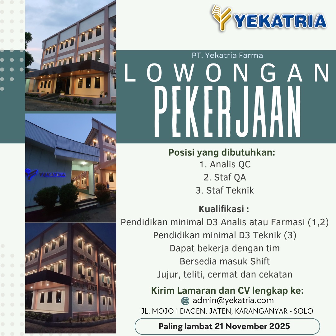 Lowongan Pekerjaan Analis QC PT Yekatria