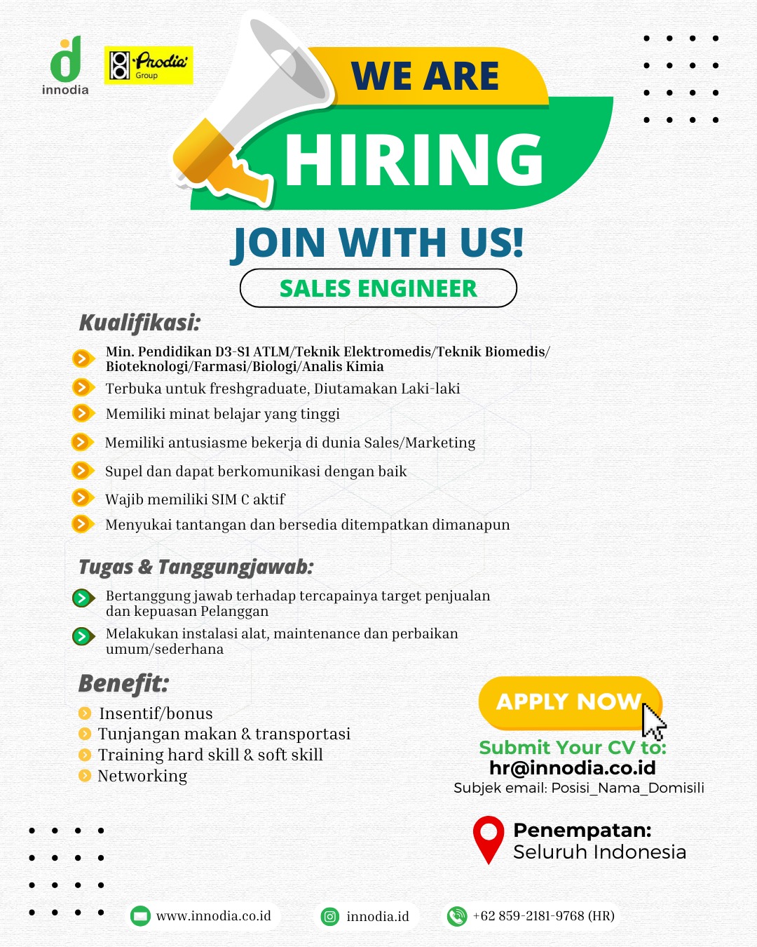 Lowongan Pekerjaan Sales Enginer INNODIA