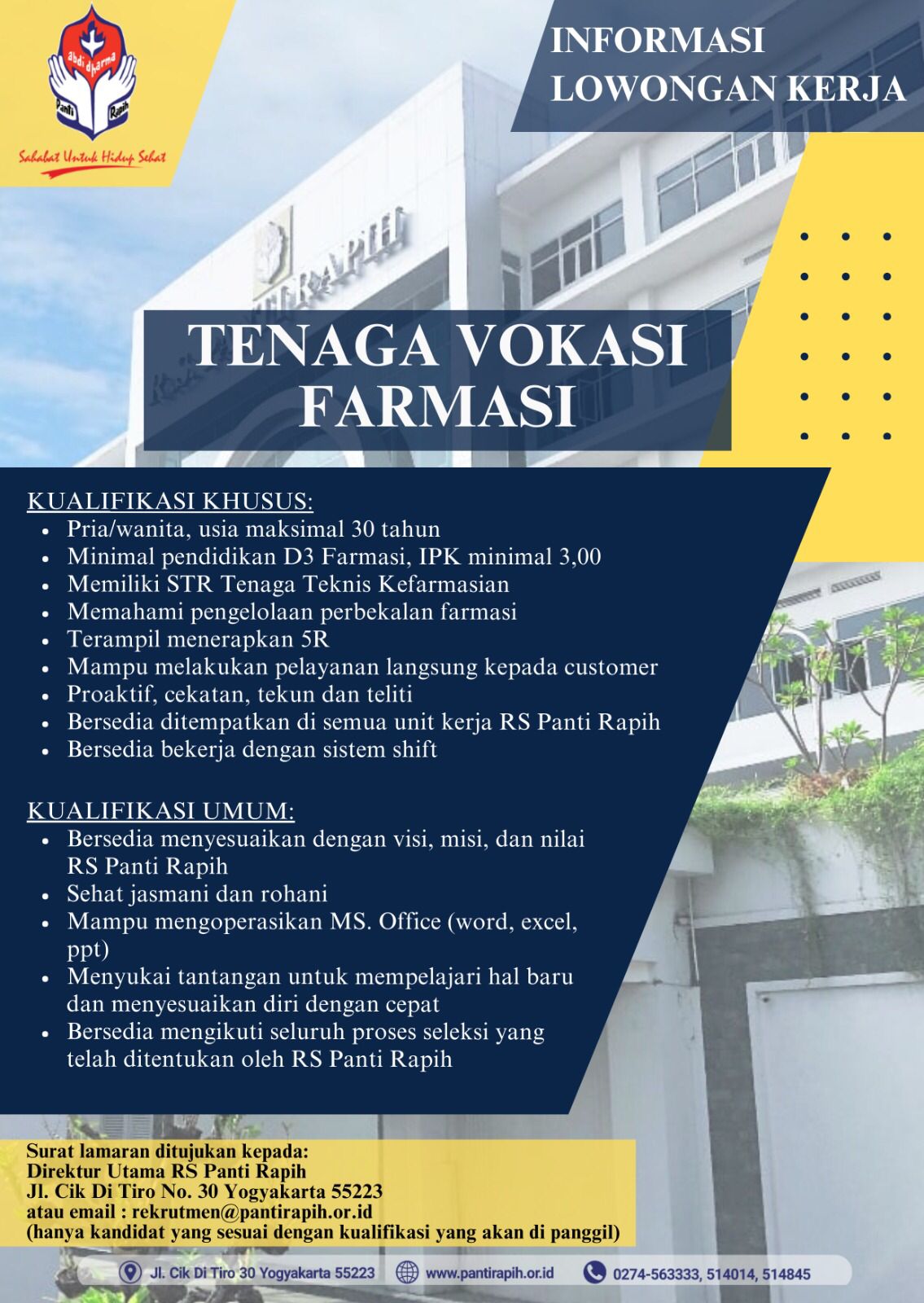 Lowongan Pekerjaan Tenaga Vokasi Farmasi RS Panti Rapih