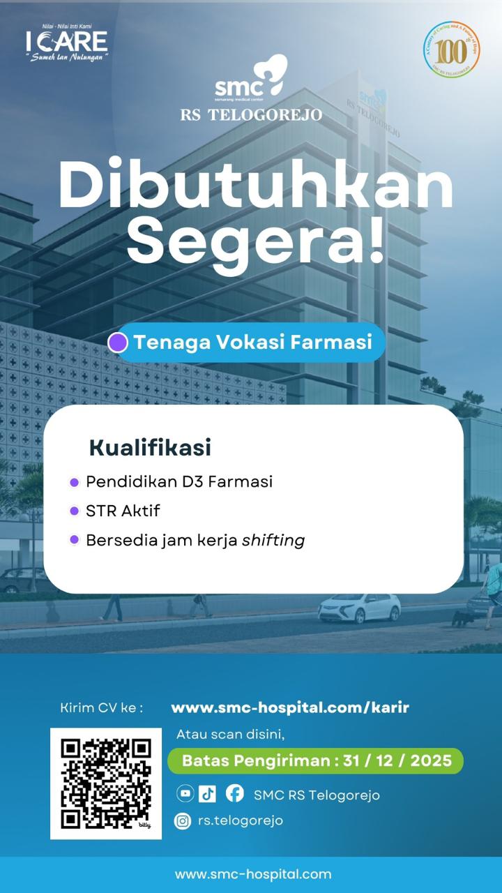 Lowongan Pekerjanaan Tenaga Vokasi Farmasi Rumah Sakit Telogorejo Semarang