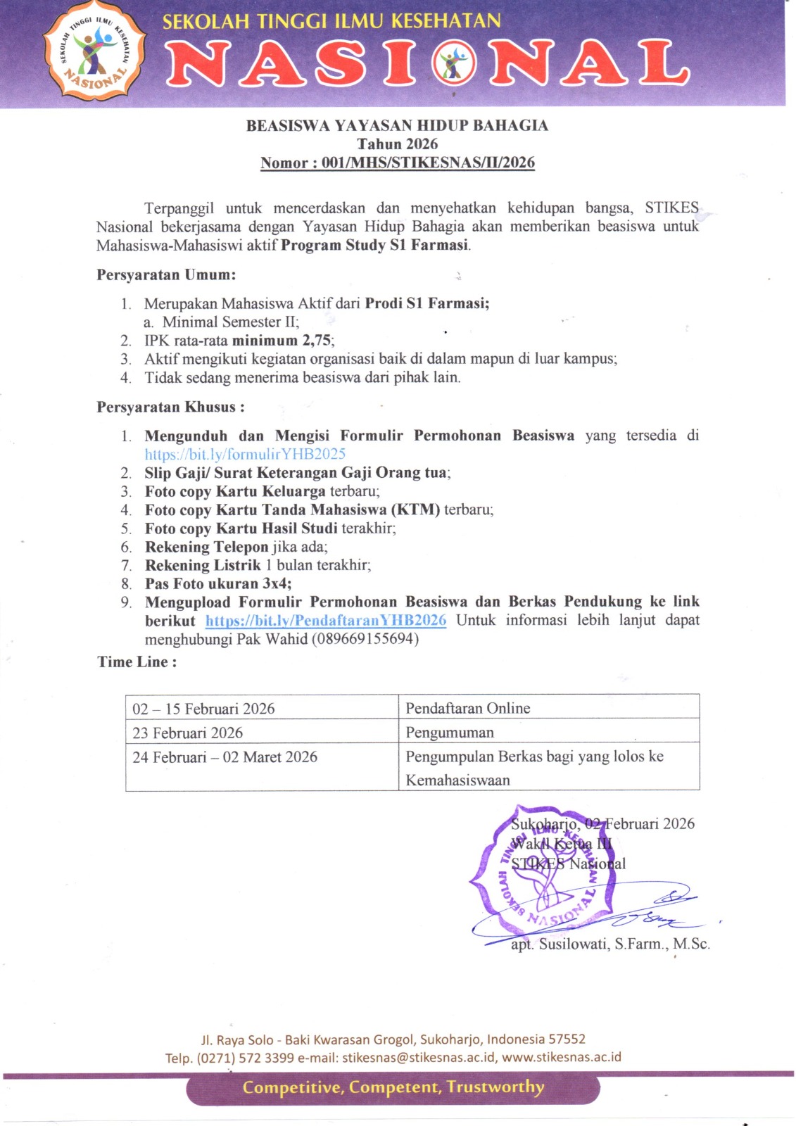 Pengumuman Pembukaan Beasiswa Yayasan Hidup Bahagia Tahun Akademik 2025 2026 Genap