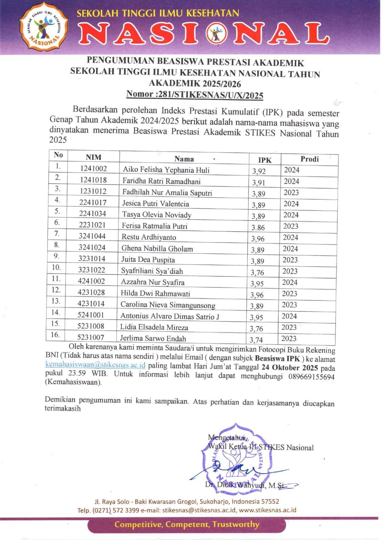 Pengumuman Penerima Beasiswa Prestasi Akademik 2025 2026